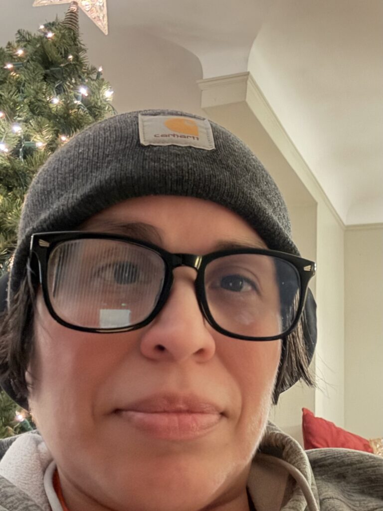 I changed the Bio on my title page on January 10. I took this picture on January 1. My Christmas tree was still up! I tried to smile a little bit, but I think that it’s gone now for the most part.